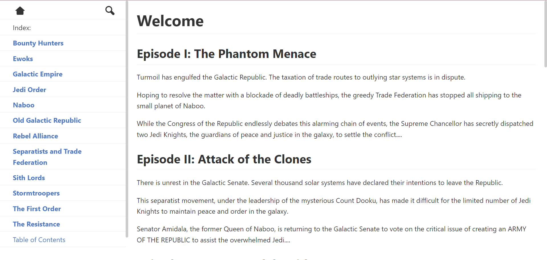 The navigation sidebar will show all the sub directories and files in the same directory as the viewed file.